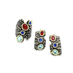 Комплект квадрат голубой камень